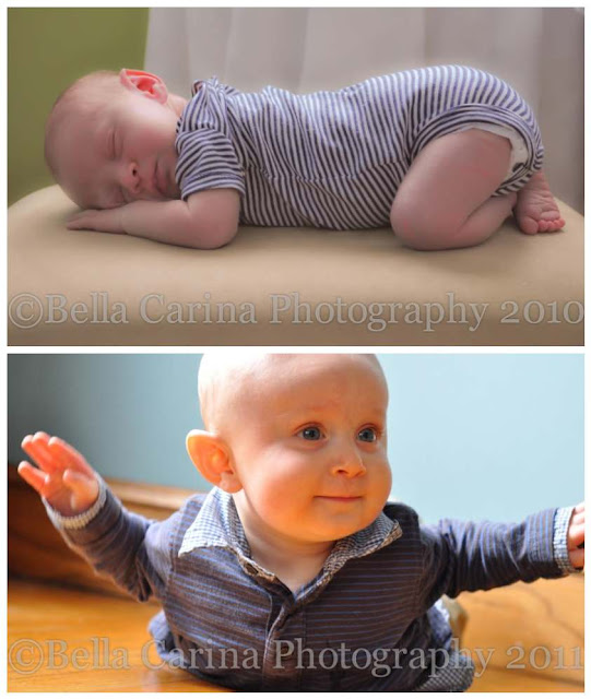 I am always blown away when I see how much babies change in just the first year of their life! Here’s a couple side-by-sides (or a top-to-bottoms, whichever way you look at it) of my cutie nephew Zach…he’s getting so big and has such a great personality! The top was from his newborn shoot and the bottom is from his 8 month shoot. Can you believe it’s the same baby!?